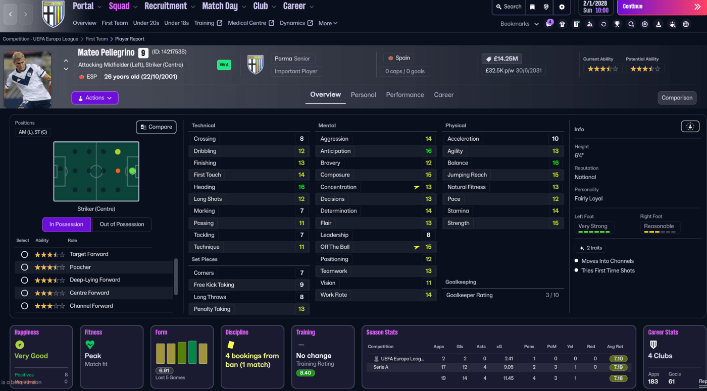 Rinaldi was really excited about the progress this Parma team was making. Pellegrino was absolutely flying up front with 14 goals in 19 games, while Alajbegovic has scored 15 in 25, Darvich had 4 goals and 6 assists and Bartesaghi had 7 assists in 14 starts from left back.