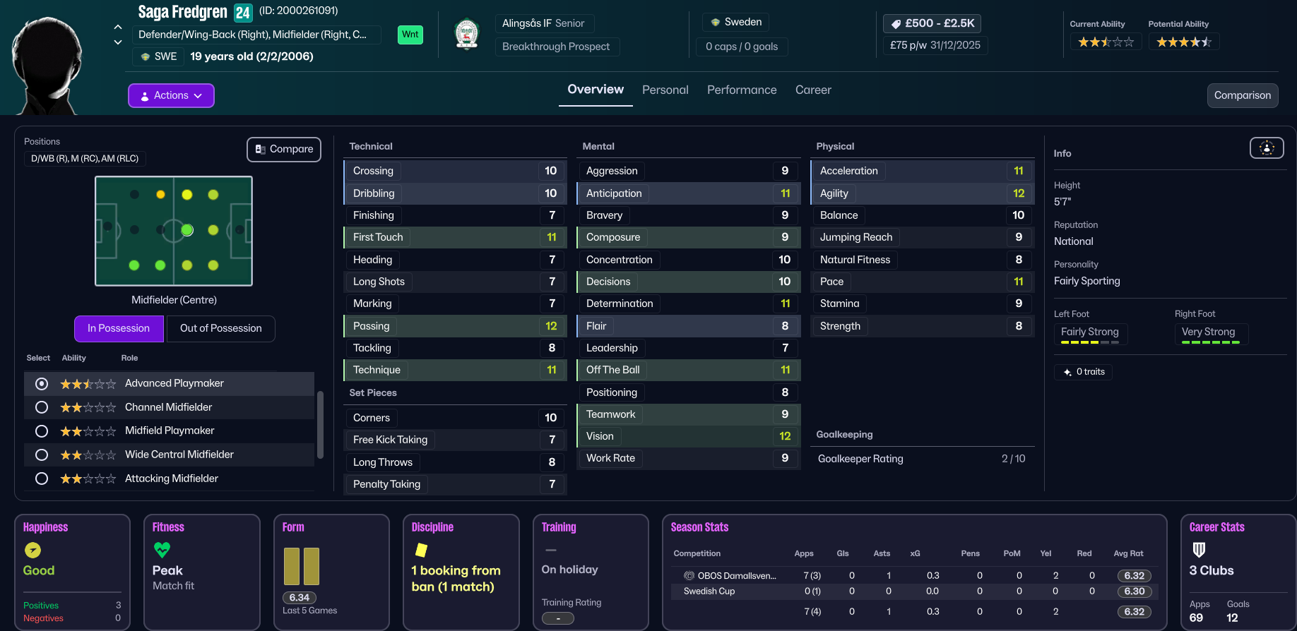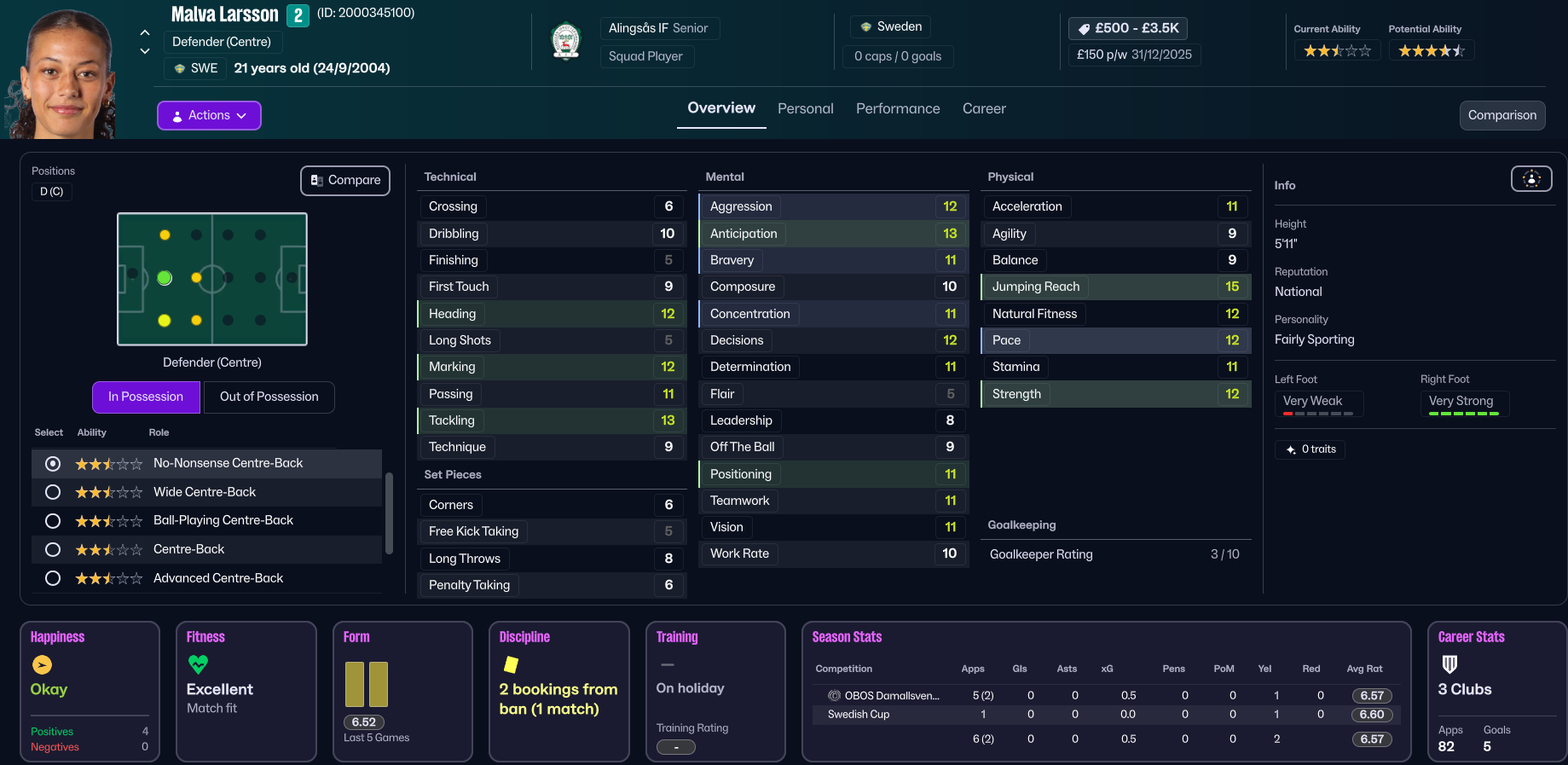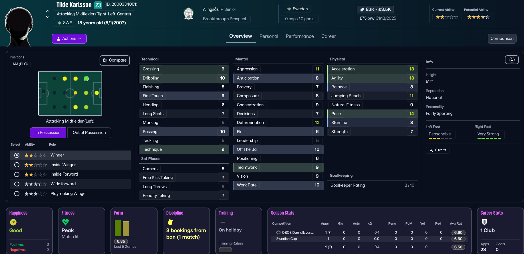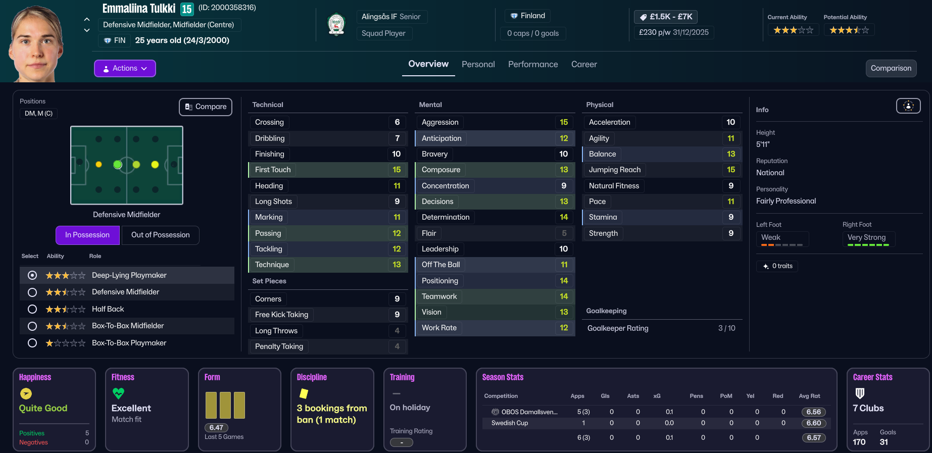 We previously mentioned Alingsås IF as potentially the most difficult club challenge on FM26 in our Guide to Women’s Football, so Freja faces a massive test in her first role. That challenge is portrayed in-game as, at the end of September, Alingsås IF are bottom of Damallsvenskan without a win and just 9 points after 19 games of the 26-game season. The club is 10 points away from survival with 7 games remaining, meaning relegation is virtually inevitable.