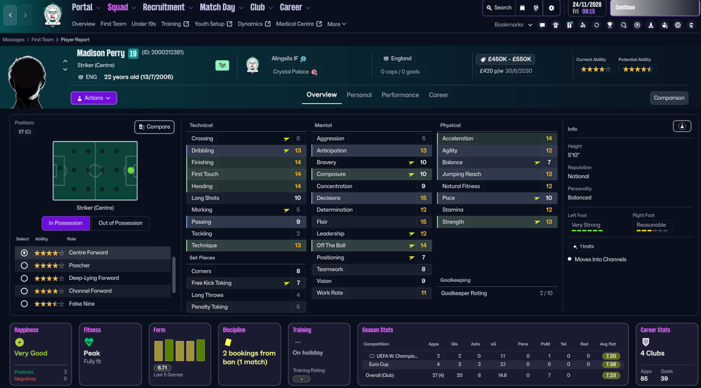 That teed up a second group game against Braga, who won their first game 7-1 against Metalist Kharkiv. Brunner crashed an early half volley against the bar and Perry followed suit half an hour later. The Portuguese side grew into it and headed the opener, before Brunner again hit the bar and they were unlucky to lose 1-0. And, despite receiving no messages about the match or the competition… good one again Sports Interactive!… the Champions League dream was over.