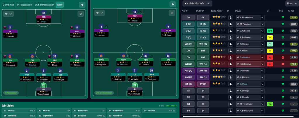The good news was that they had over a month off before the next game in the FA Cup. Holm wasted no time in moving on players who weren’t up to it or didn’t want to be at the club, bringing in £500k for six players. Her first move on the incomings was to bring in a bonafide wonderkid, signing South Korean international attacker Casey Phair on loan from Angel City, with the option to purchase her for £350k in the summer. And they added a good defensive prospect Momoko Kawasumi for £150k from Albirex.