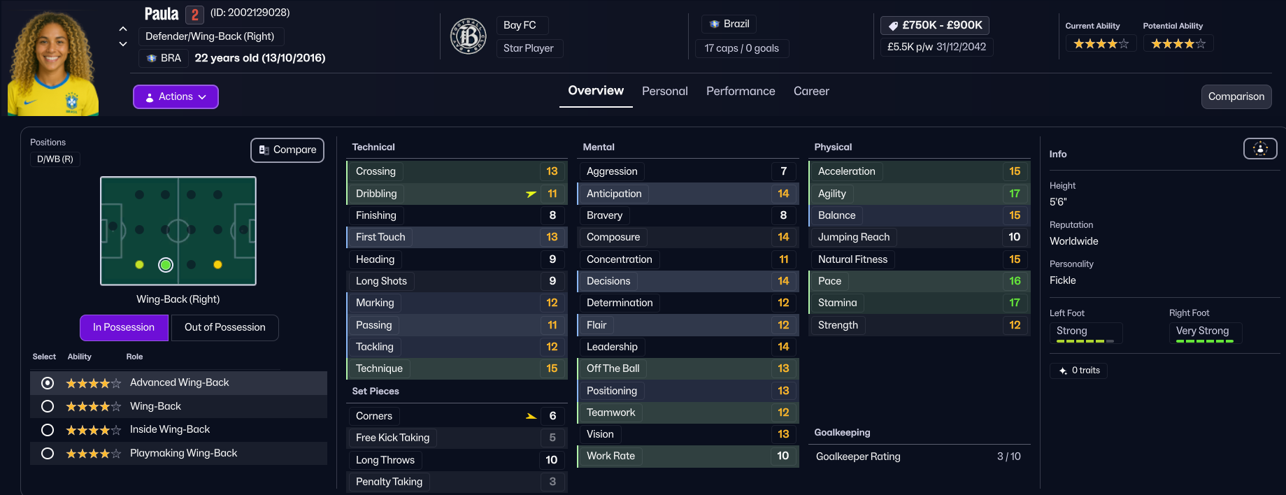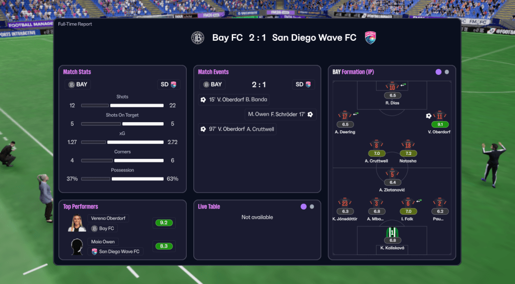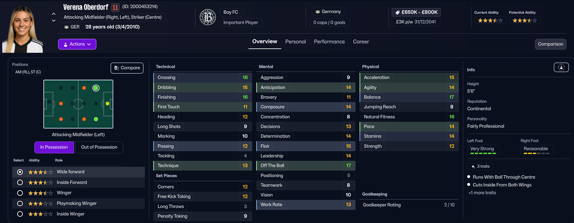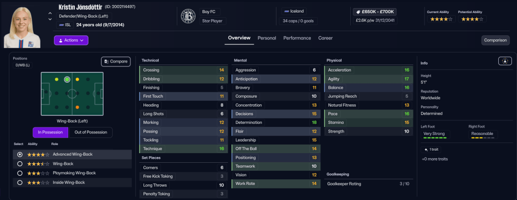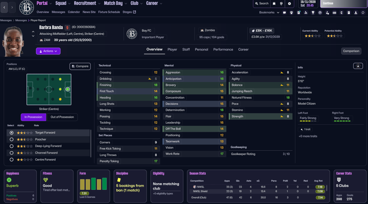 Freja Holm brought ageing superstar striker Barbra Banda back to the NWSL in 2038 but it didn’t quite provide the spark that the Swedish manager was hoping for. Her Bay FC side finished in a record-equalling 5th, but finished the season in really poor form.