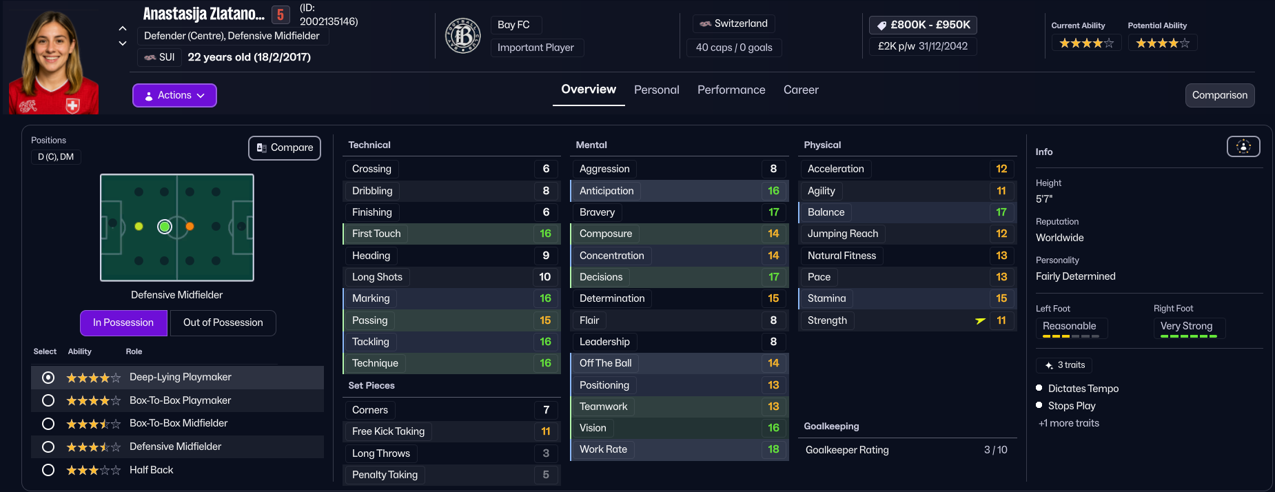 But Holm had her sight set much higher than 5th place. She began the 2038 offseason by selling on underperforming players, including starting goalkeeper Thyrrestrup to Leicester, for a profit of £1.1m. They then lost right back Cristiane to Chelsea for a massive club record sale of £2.8m, which, as far as Holm could see, was the second-biggest women’s transfer fee of all time.
