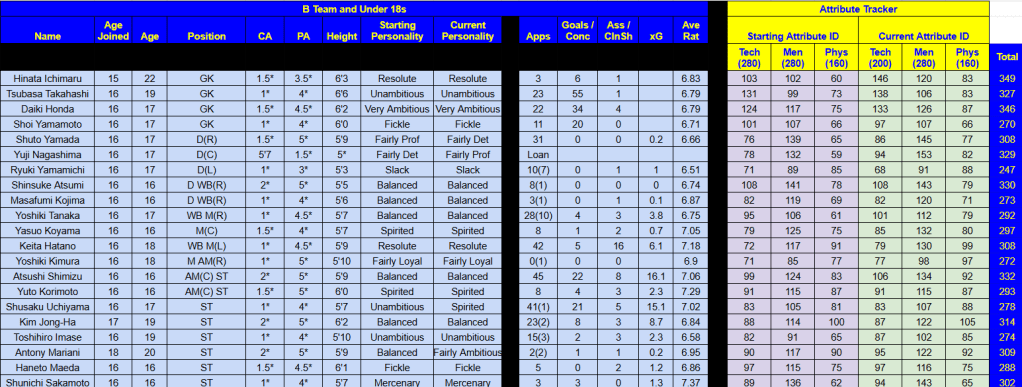 There were also a few standout performances in the youth sides, including striker Shusaku Uchiyama combining for 42 goals and wingback Keita Hatano delivering 16 assists. Check out the youth players’ progress by clicking the chart below.