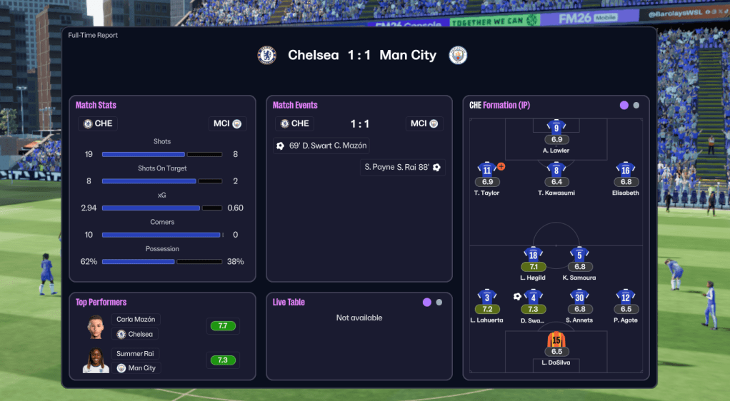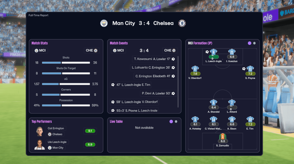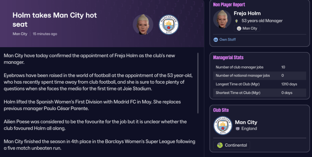 But could Holm continue to strengthen the City squad to move closer to the big two in the face of the usual dodgy finances in women’s football in FM26? Join us on Friday to find out!