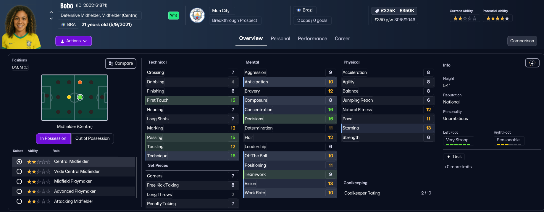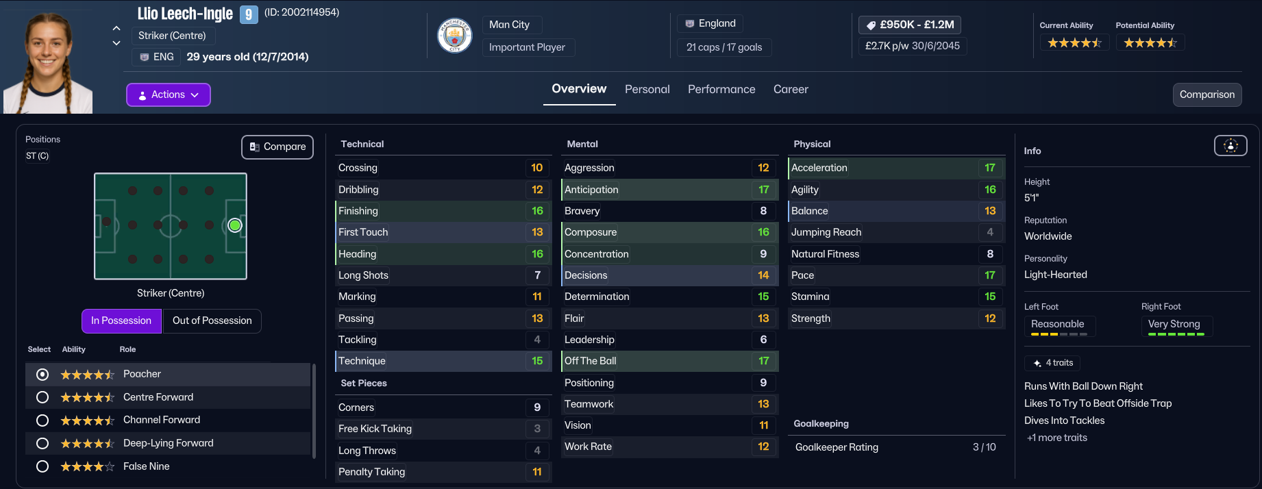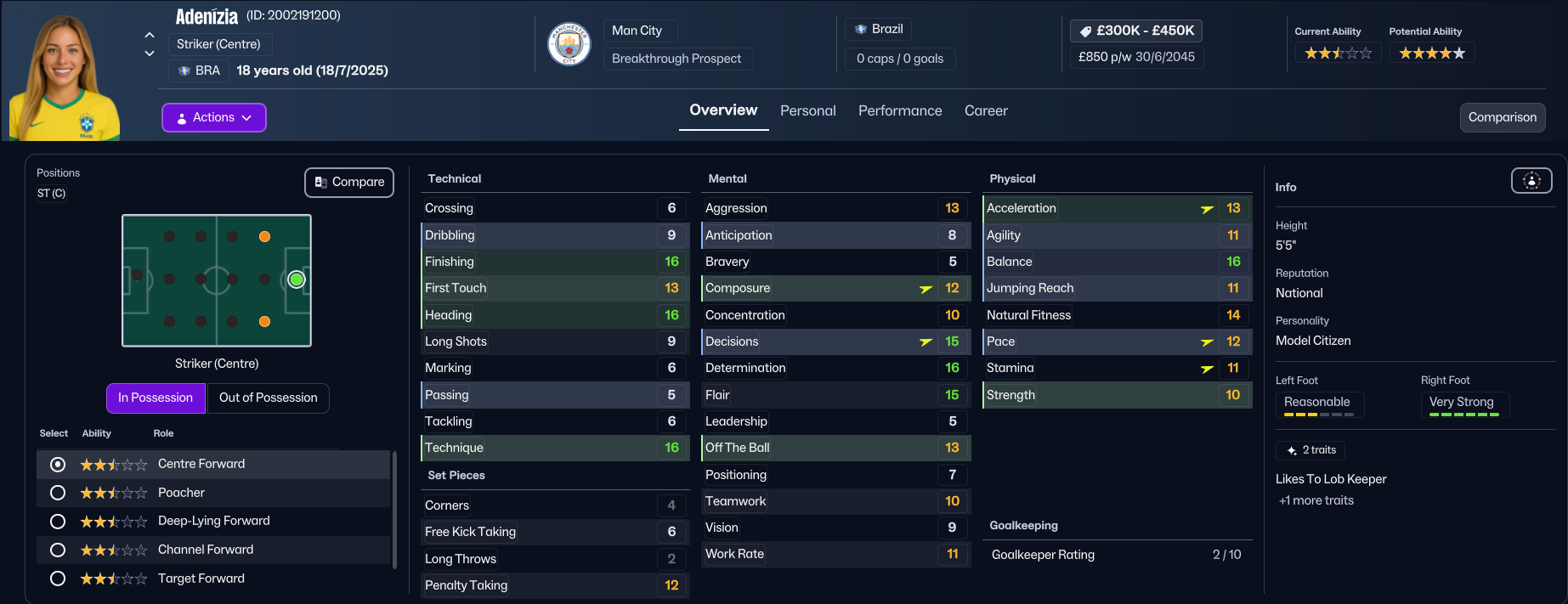 Unsurprisingly, the finances weren’t great, with City having a bank balance of minus £866k, a transfer budget of £0 and £8k over their £49k weekly wage budget. City play at the Joie Stadium in Manchester and train at the City Football Academy, which has superb training and youth facilities alongside excellent academy coaching and exceptional youth recruitment. Holm’s first task was to address the financial mess, selling 19 players for £1.9m and releasing 12 more to free up £20k in wages.