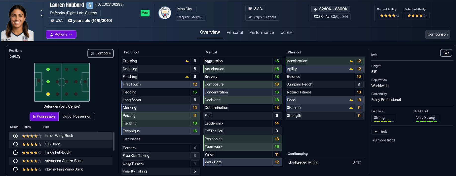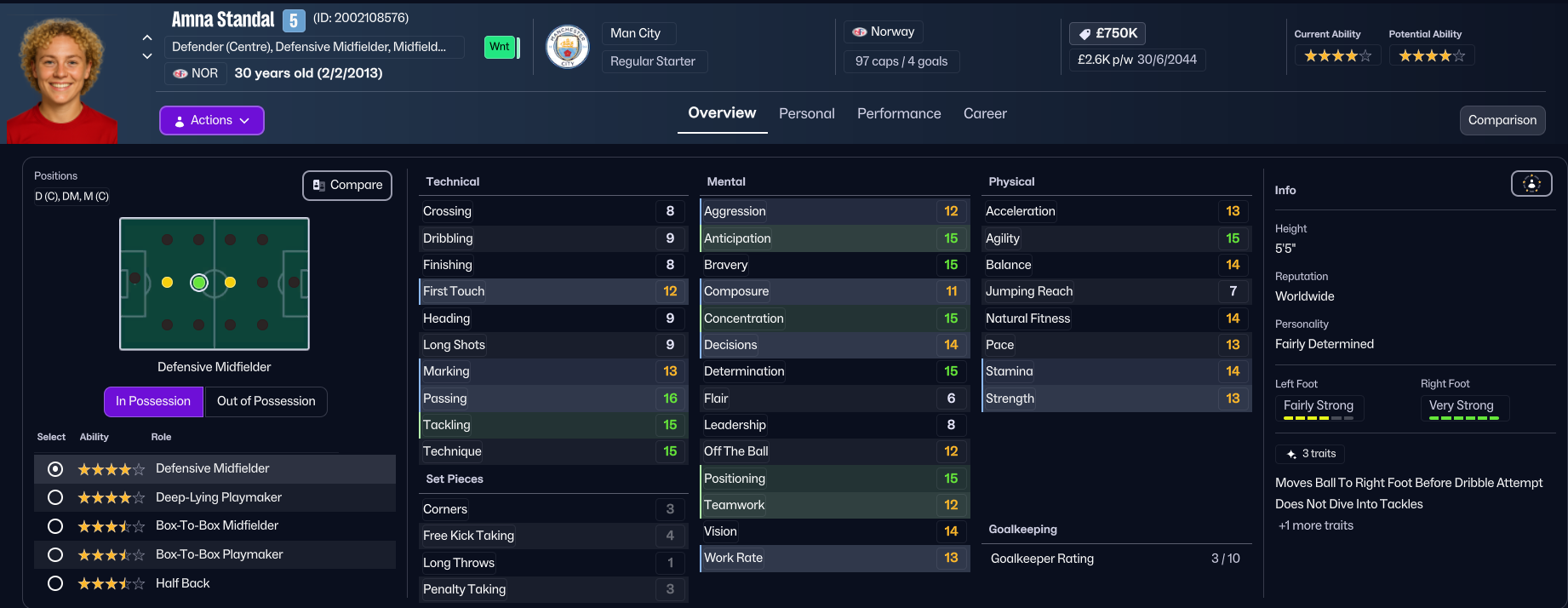 Not too much has changed in England since Holm departed, wth Arsenal lifting every title bar two won by Chelsea in 2040 and 2042. City just finished 4th in WSL, 22 points behind champions Arsenal, and manager Paulo César Parenta retired at the end of the season after four years at the club. So Holm had another big task on her hands to usurp the big two, 11 years on from giving up on the idea at Everton. To achieve that goal, Holm is united with former Chelsea and USA manager Emma Hayes, who stepped back from being City manager to become Director of Football in 2037.