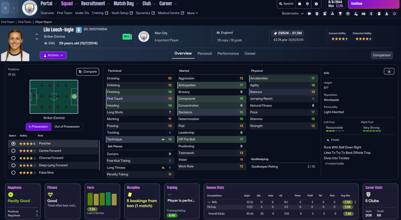 Not too much has changed in England since Holm departed, wth Arsenal lifting every title bar two won by Chelsea in 2040 and 2042. City just finished 4th in WSL, 22 points behind champions Arsenal, and manager Paulo César Parenta retired at the end of the season after four years at the club. So Holm had another big task on her hands to usurp the big two, 11 years on from giving up on the idea at Everton. To achieve that goal, Holm is united with former Chelsea and USA manager Emma Hayes, who stepped back from being City manager to become Director of Football in 2037.