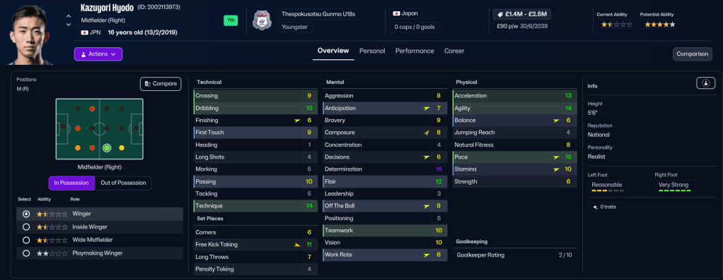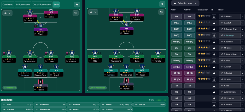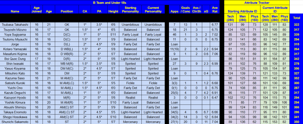 Below is an overview of the players’ progression this season, with Diallo remaining the best player at the club, according to Rasamu’s attribute ID system. While the likes of Honda, who’d gone from 1.5-star to 4-star ability in 12 months, and left back Mito had made really impressive progress. Click the table below to explore further.