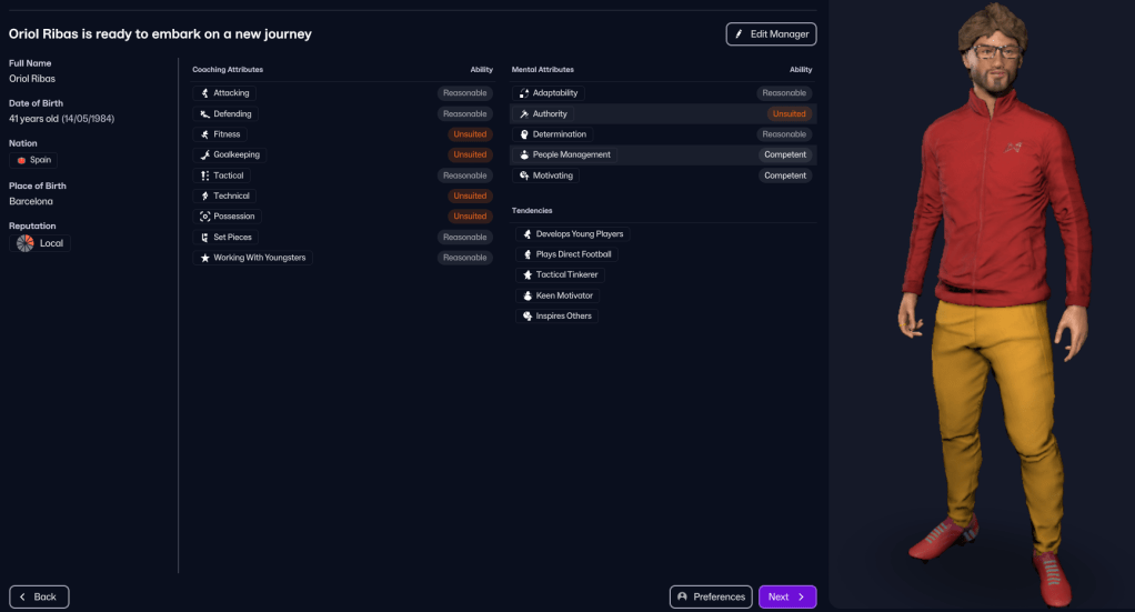 Ribas’ Revolució Quadribarrats mission is to reclaim the city of Barcelona as truly Catalan. His first task will be to lead the club out of Spain’s fourth-tier Segunda Federación – which, just for a bit of early rivalry stoking, also includes FC Barcelona’s B team, Barcelona Atlétic. He’ll then aim for the second tier for the first time in club history, before setting his sights on reaching La Liga. The overarching objective is to usurp FC Barcelona, finish above them in the league, and claim Sant Andreu’s first Spanish title. But the save will only be completed when Sant Andreu has a higher world reputation than FC Barcelona.