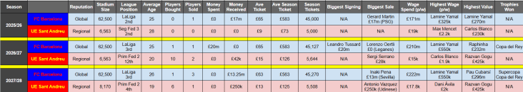 These were truly exciting times for the Sant Andreu support, who saw their club move within just one league of local rivals FC Barcelona for the first time. There was no doubt they faced a massive test to stay in Spain’s second tier, but Ribas had full faith in his exciting youngsters to make the step up. And, as usual, here is our comparison with FC Barcelona, who won a cup double of Copa del Rey and Supercopa but only finished 3rd in LaLiga, which Real Madrid won for a third successive season.