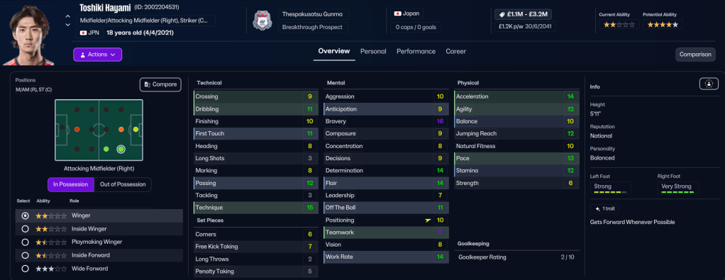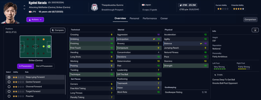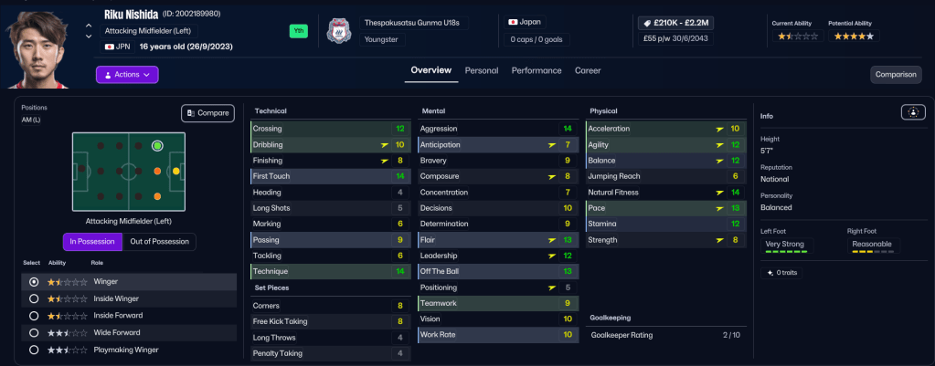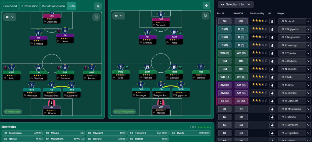 Rasamu’s scouting team still hadn’t unearthed any players capable of replacing them, so Rasamu stuck to what he knew. He promoted attacking midfielder Toshiki Hayami, who later left on loan, striker Kyohei Harada and centre back Kyoga Maie to the first team, which now contains 14 players with at least 4.5-star potential.