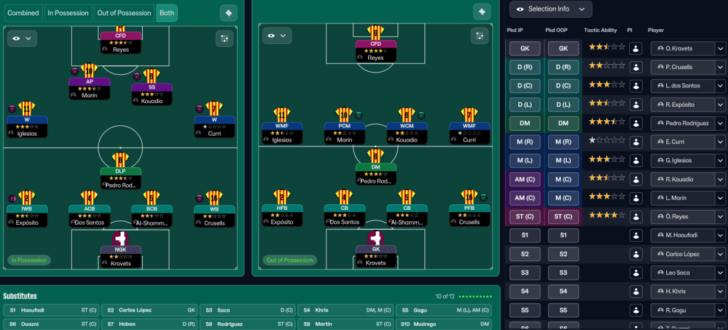 Ribas tweaked his approach to get the new players into the team, with Kouadio competing with Razvan Gogu to play alongside Luis Marín behind striker Óscar Reyes and Iglesias and Curri playing on the wings. He created two versions, with the below for away games and a more aggressive approach with Marín and Kouadio staying higher.