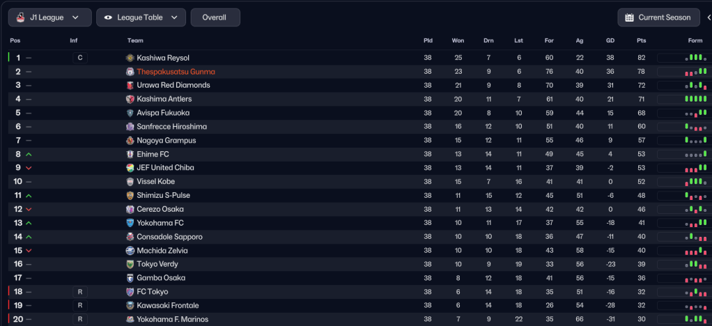 Robaato Rasamu passed 15 years in charge of Thespakusatsu Gunma, fresh from leading the club to a fourth 2nd-place finish and a sixth top-four finish in J1 League. In those 15 years, Rasamu had led Gunma into battle 680 times, winning 332, drawing 163 and losing 185 en route to leading the club out of the third tier and competing with Japan’s elite. And, ultimately, they achieved the pinnacle as Gunma secured their maiden J1 League title in 2038.