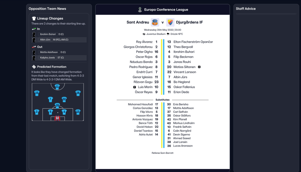 Djurgårdens defeated Kyiv 2-1 to tee up an intriguing Europa Conference League Final. That saw 41,500 fans from Sweden and Spain descend on Turin for a huge game at Juventus’ Allianz Stadium. Rydell got injured the day before the game and Cuenca remained sidelined with a long-term hip injury, and Ribas’ biggest decision was between starting Gogu or Vazquez. And he lined up: