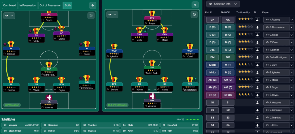 Reyes scored 3 minutes into the new season, only for Sevilla to quickly respond and earn a point, before a 0-0 bore draw at Mallorca. But their first win arrived at home to Villarreal and José Mourinho, as late Vávra and Gogu goals edged a 3-2 thriller and they hit top form as a Curri brace led a 4-1 away domination of Tenerife. However, they lost back-to-back games against Osasuna and Girona as the continental games kicked in (see below), then 3-1 to a Julian Álvarez hat trick at Atlético after the international break and struggled to another 3-1 loss at home to their Turf Wars rivals FC Barcelona.