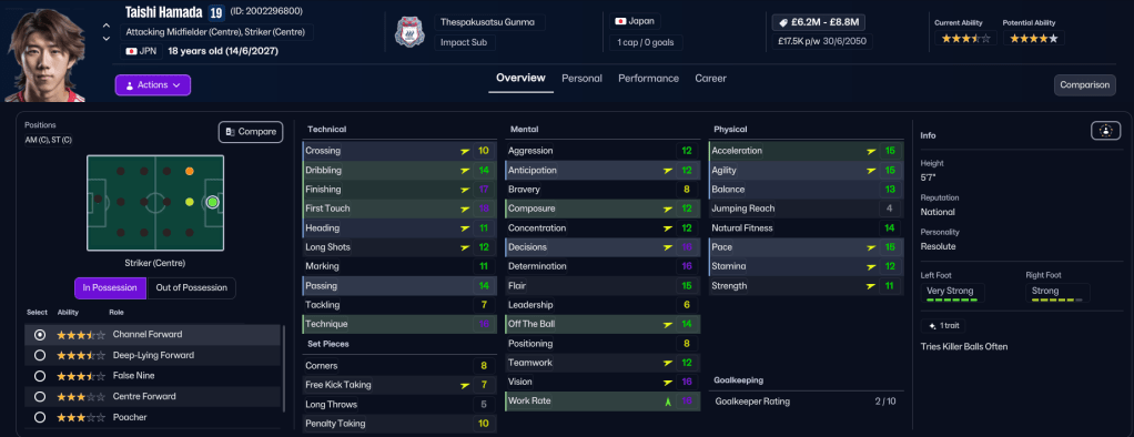 As one club legend departed, another one came in the other direction. Rasamu had spotted homegrown midfielder Shota Asada, now 35, was out of contract at Zelvia and, 10 years on from leaving the club for Saudi, before spells at Sapporo, JEF United and Zelvia, he returned for one final swansong. Realistically, he was nowhere near good enough, but Rasamu loved the nostalgia of Asada’s return. And, despite that wealth, Rasamu’s transfer policy was restricted by already having the maximum five foreign players in the first-team squad. But he did snap up an exciting domestic talent, signing striker Taishi Hamada for £6m from Gamba Osaka.