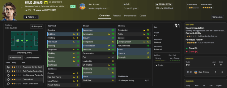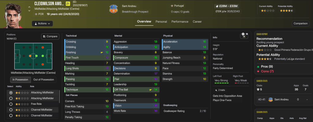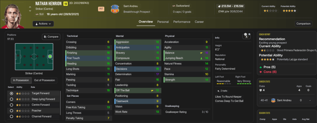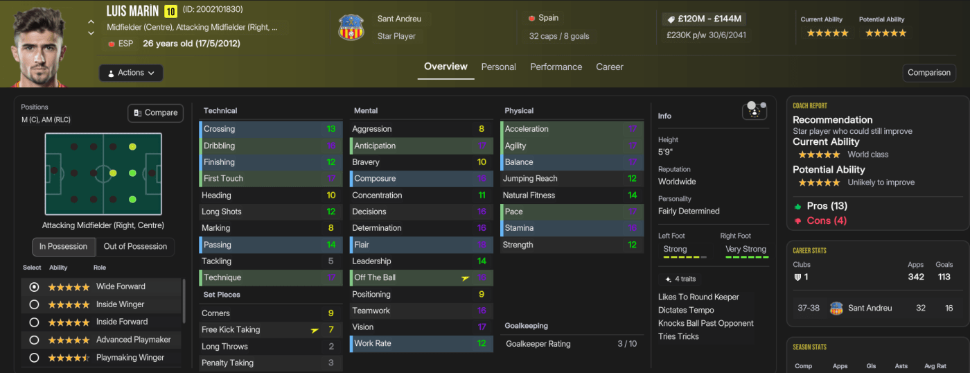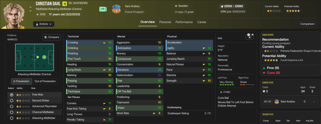 The latest league success was the end of the road for Ribas, who’d very much established Sant Andreu as the dominant side in their Turf Wars rivalry with Barcelona. However, he wasn’t a fan of players demanding £400k a week to stay at the club, and felt he’d taken the club as far as he could. The club’s success was predominantly thanks to homegrown stars Marín and Iglesias, both now 31, who ended the save with 188 goals and 134 assists and 82 goals and 173 assists in 502 and 430 league games respectively. Fellow homegrown star Norbert, who’s only 25, has scored 62 goals with 70 assists in 243 games, while Jansen has 78 goals and 97 assists in 166 games and Docherty has 142 goals in 191 games. But this squad has become a pretty unstoppable force, led by superstars like Bonacic and Christoforou, plus a mass of exciting talents like Nikolaidis and Leonardi.