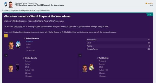 We moved into 2032 celebrating youth product Matteo Giacalone becoming the first Atalanta player in history to win World Player of the Year and World Golden Ball awards.