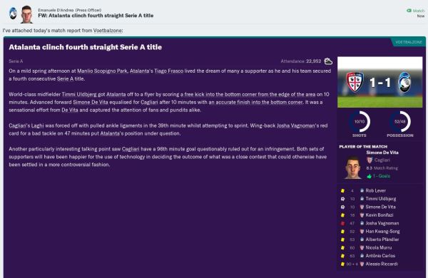 Last time out I established myself as the greatest English manager of all time by wrapping up a sixth successive Serie A title and a third Champions Cup crown for Atalanta.