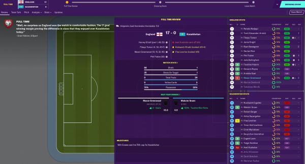 I'm not sure I've ever managed England on Football Manager, I can't remember doing so on recent versions that's for sure. In fact I've rarely done international management, and it's obviously very different.