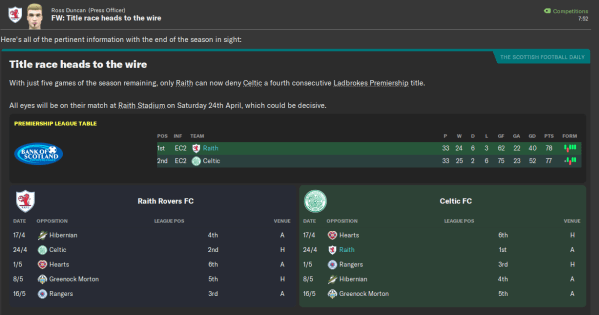 In 2035, Raith Rovers had reached a European final and qualified for Europe for the first time in 30 years. Could they build on that? You bet they could, as Robí di Lathamé's team of heroes won the club's first European trophy, won the League Cup and qualified for the Champions League for the first time in its history.
