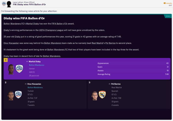 Bolton Wanderers had bagged yet another Premier League title and a 6th Champions League in 10 years in the 2048/49 campaign. With 2050 (and FM22) approaching, I'd decided this would be my last season, which also happened to be the 175th in the club's history. And we went into it targeting a first Club World Cup and 15 titles in a row.