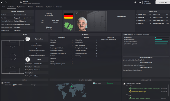 Ruprecht Prusseit found himself on the managerial scrapheap within two years of starting his Football Manager career. The Dresden-born coach was unceremoniously sacked when his FSV Zwickau side was dumped out of 3. Liga in dramatic fashion by local rivals Erzgebirge Aue.