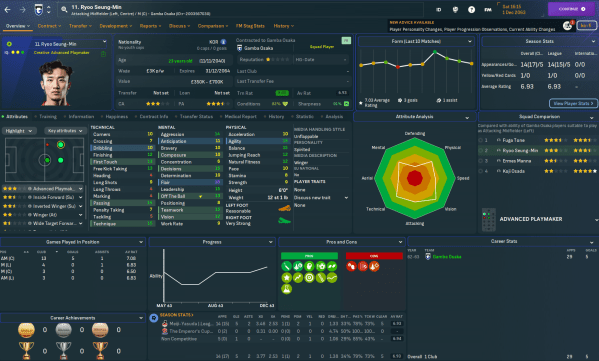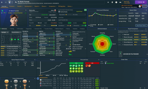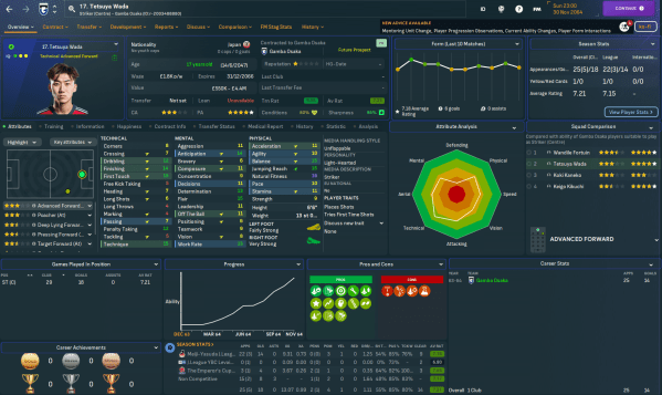 An exciting young Gamba Osaka team, led by a mass of outstanding homegrown talents, booked the club's place in the AFC Champions League for the first time in 28 years in 2064. Manager Trebor Mahtal now faced the challenge of strengthening his inexperienced squad for even more fixtures as they balanced domestic and continental football towards the end of the league campaign.