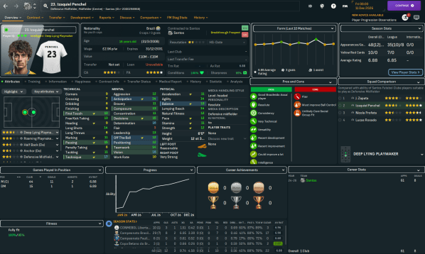 An epic bottle job saw Santos Futebol Clube hand the Série A title to Flamengo, only to impressively recover their nerve and win their second Copa Libertadores of the Robinho Lazaró reign. Heading into 2036, Lazaró was fully focused on regaining the Brazilian league crown in what he planned to be his final season at Santos.