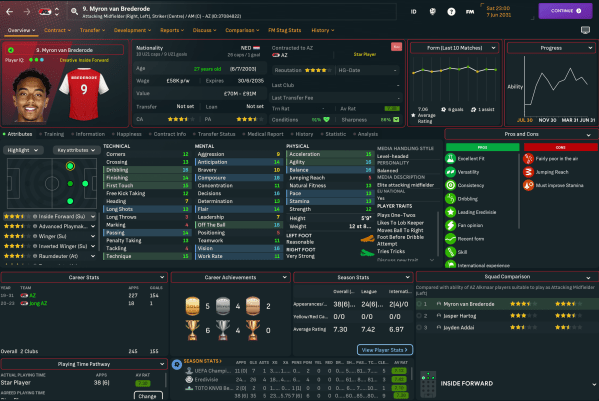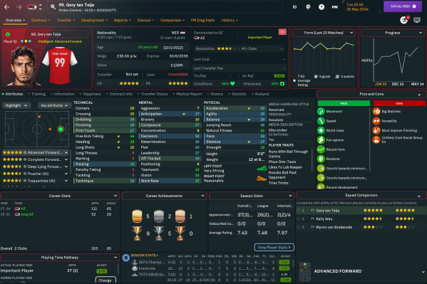 AZ Alkmaar made a promising start to life under Robinho Lazaró, who'd been impressed with his side's efforts to finish 4th in Eredivisie in 2023/24. However, these early seasons don't really matter too much in our bid to become national and European champions with a team of academy products.