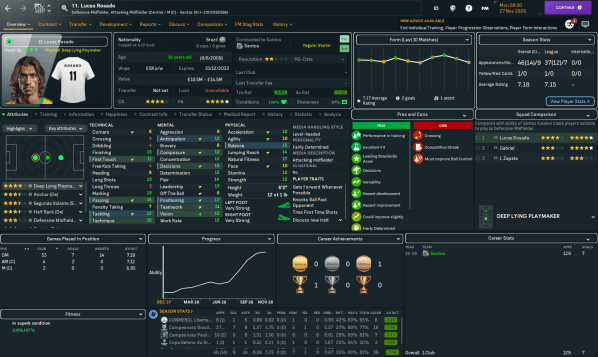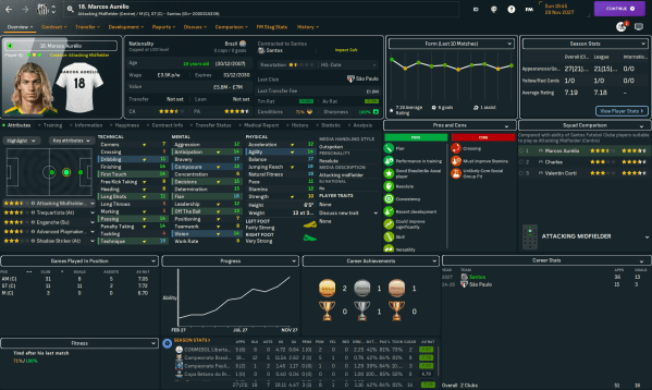 Santos FC enjoyed one of their best-ever seasons in 2034, winning both their state championship and Série A before only dodgy goalkeeper injuries and a dodgy penalty prevented them from winning Copa Libertadores. Legendary manager Robinho Lazaró took a little time out to celebrate those successes and recover from a wild year that also included... Continue Reading →