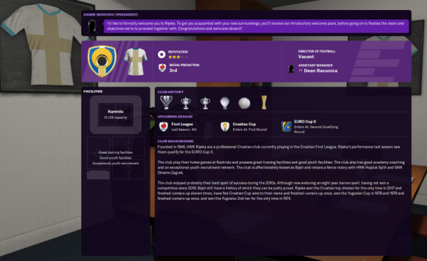 A first season in Croatia ended without a trophy but offered glimpses of promise, including a potential superstar striker smashing goalscoring records. However, the HNK Rijeka board were unhappy with Vladimir Latunov not signing high-reputation players, which he immediately set about addressing in the summer of 2028.