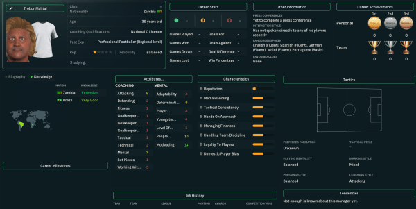 Unemployed wannabe manager Trebor Mahtal put together a CV and began circulating his name with club owners across Europe. He was happy to work anywhere in Europe, with the twist being he didn't want to manage in Europe's leading eight leagues (England, France, Italy, Germany, Netherlands, Portugal, Scotland, Spain) or Russia.