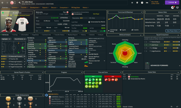 An exciting first taste of South American football saw Trebor Mahtal win five of his six matches to lead Peruvian fallen giants Universitario into midtable obscurity in 2033. The Zambian now had a big summer ahead as he looked to reshape the club and restore it to former glory.
